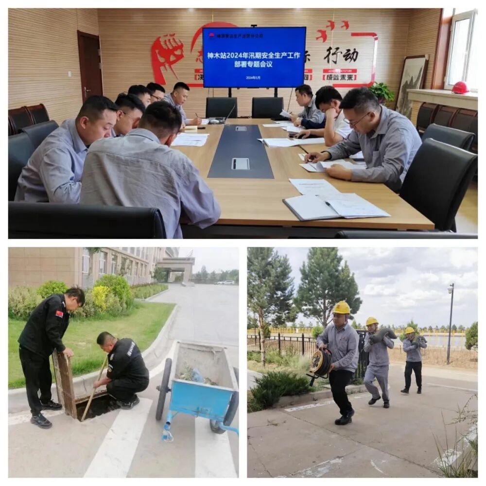早部署,全面压实防汛工作责任。神木站召开专项防汛工作会,制定神木站汛期工作方案,部署汛期重点安全生产工作,成立防汛抢险应急小组,进一步明确责任,将防汛具体举措及各重点防汛区域落实到个人。同时建立防汛抢险应急联动机制,由泵输、制浆、检修等专业岗位人员组成防汛抢险队,确保在汛情突发时人员能迅速到位进行抢险工作,从而保障安全生产。